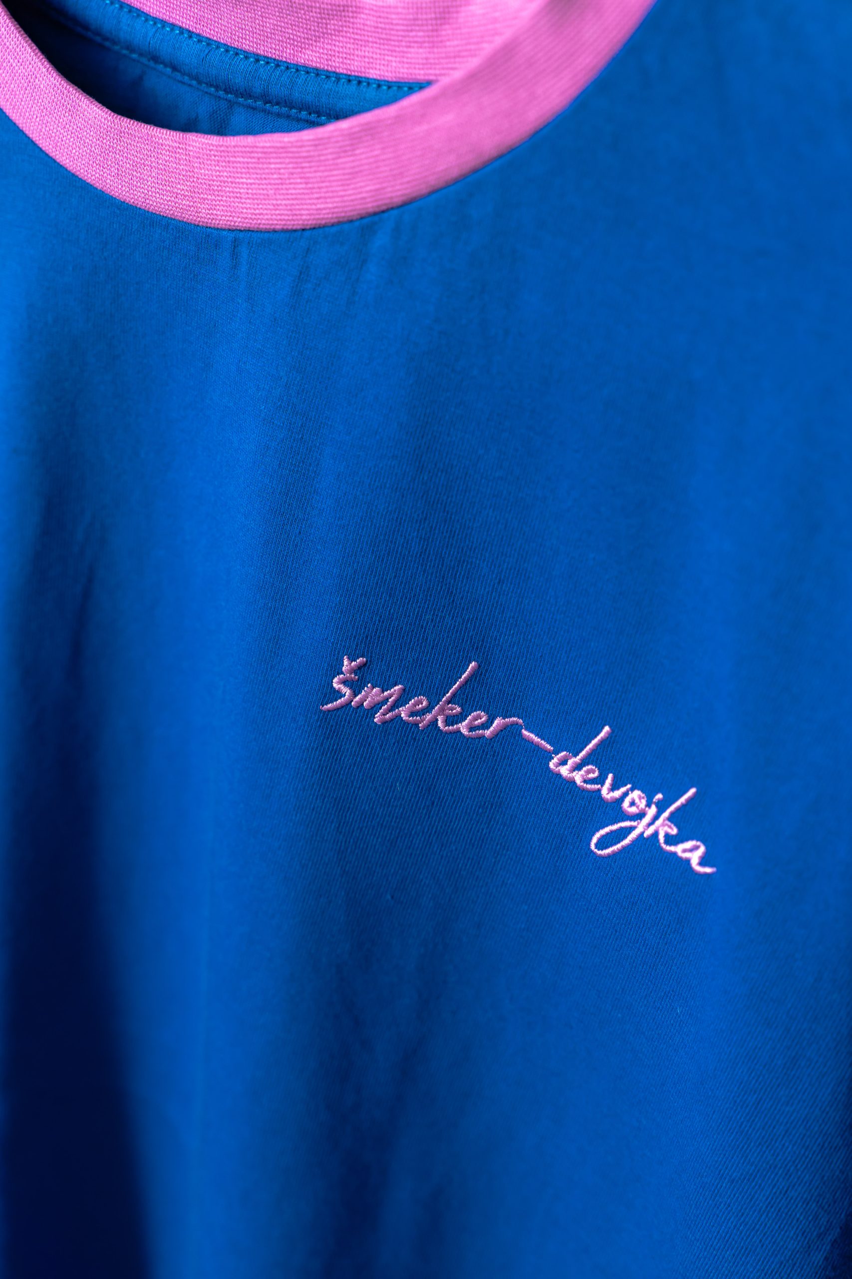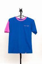 Naše majice su napravljene od posebnog pamuka, pažljivo bojenog da dobijemo željene nijanse plave i roze. Pošto kombinuje materijale različitih boja, kod prvih pranja preporučujemo korišćenje maramica za upijanje boje i odvojeno pranje od drugih stvari, kako ne bi došlo do prelivanja boja.